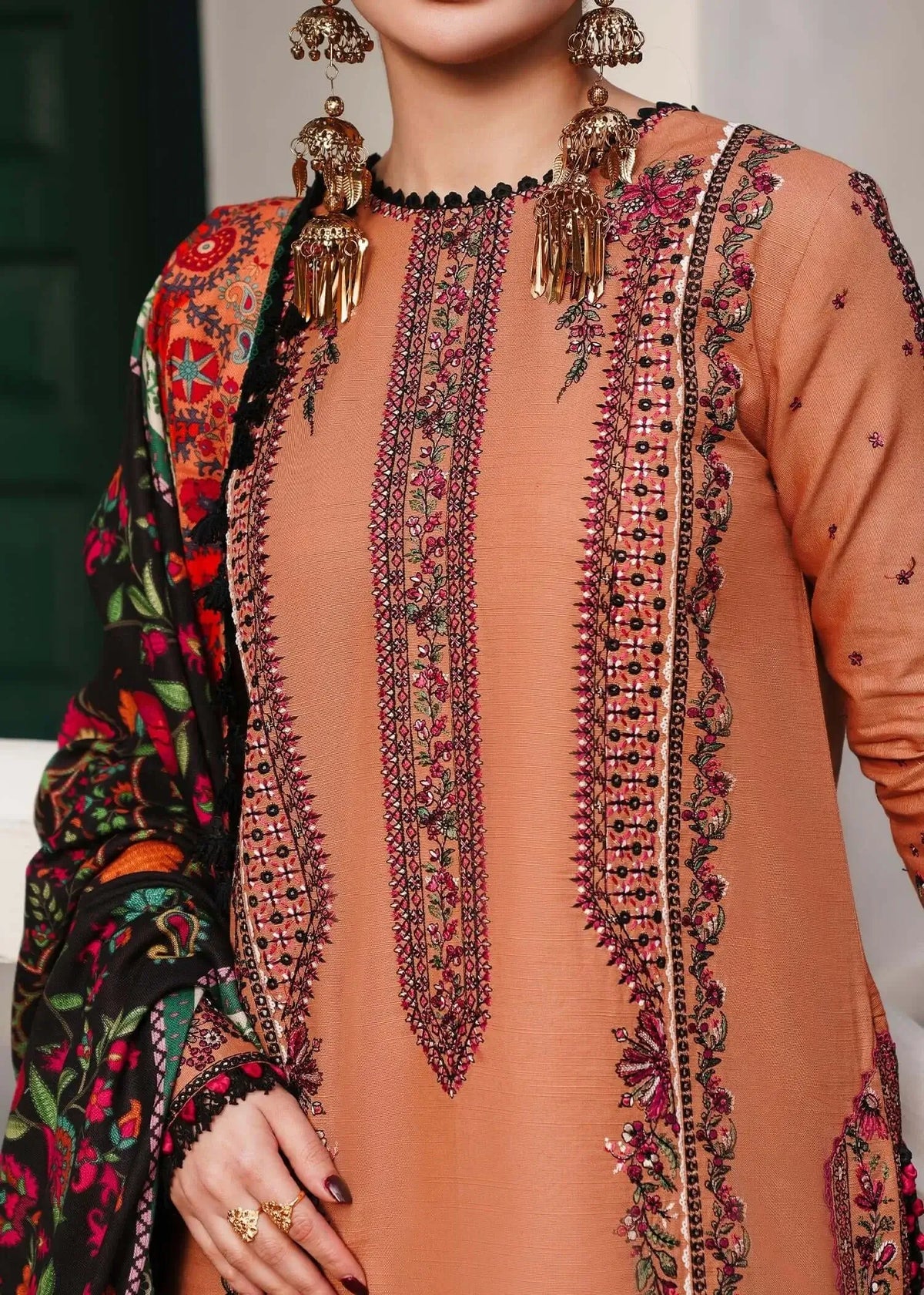 3 Piece Unstitched Embroidered Dhanak Suit with Printed Woolen Shawl | Vol 2
