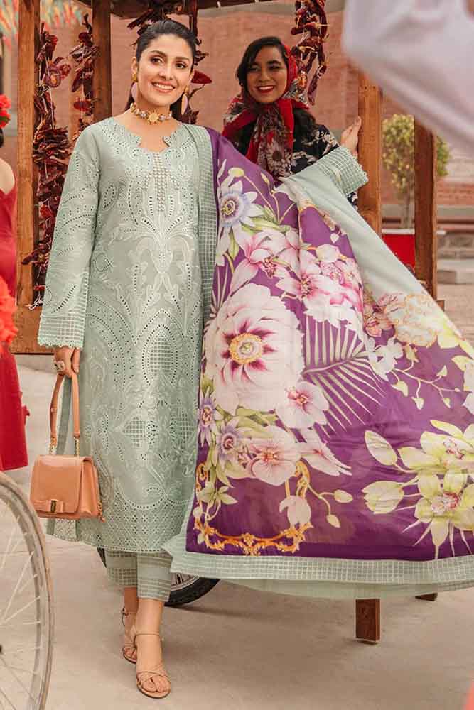 MS 42-3 Piece Unstitched Heavy Embroidered Chickan Kari Pure Lawn Suit with Digital Printed Silk Dupatta