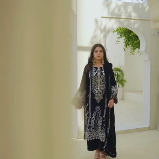 3 Piece Unstitched Embroidered Velvet Suit | Velvet Luxe